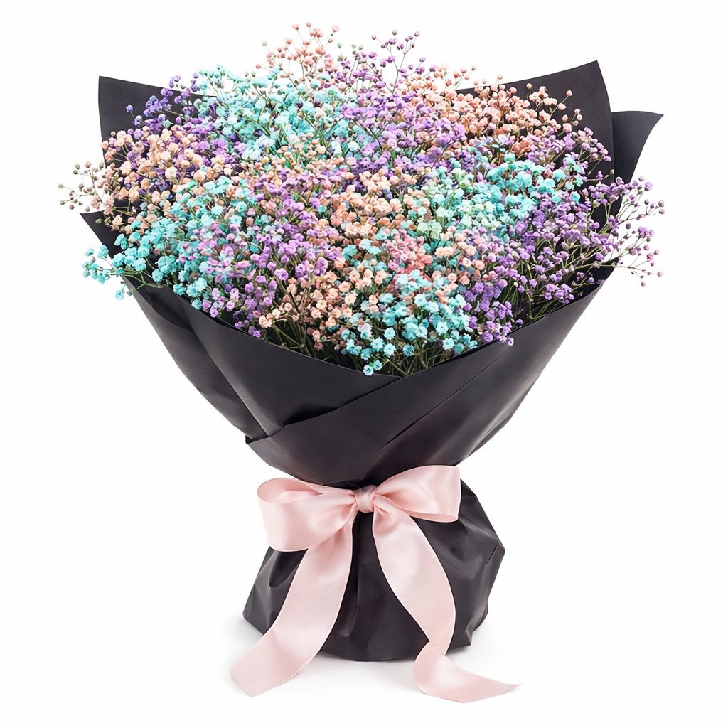 Гипсофила белая, желтая, розовая, сиреневая, голубая. Упаковка (лента, пленка, крафт, сетка, пленка матовая)